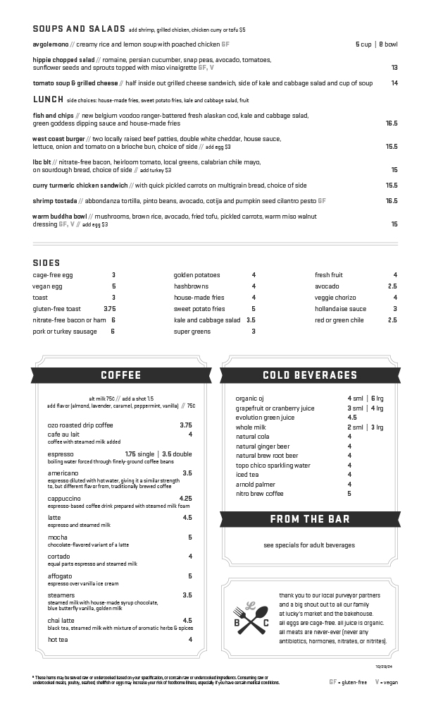 nitrate-free bacon, heirloom tomato, local greens, calabrian chile mayo, on sourdough bread, choice of side